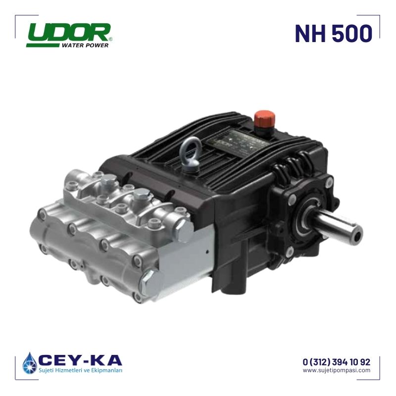 Udor NH 500, endüstriyel temizlik, profesyonel basınçlı yıkama, kanal açma, yüzey temizleme ve su jeti uygulamaları için geliştirilmiş 3 pistonlu yüksek basınç pompası serisidir. Güçlü gövde yapısı ve optimize edilmiş piston grubu sayesinde 500 bar / 7250 PSI seviyesinde kararlı, sürekli ve güvenilir çalışma sağlar.